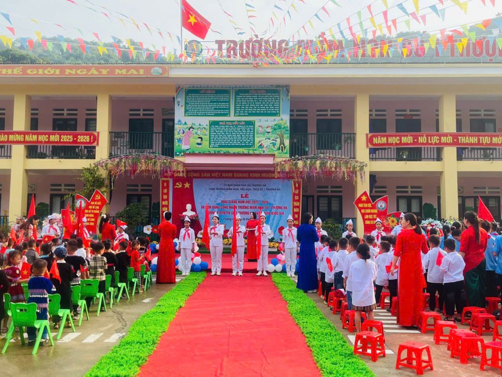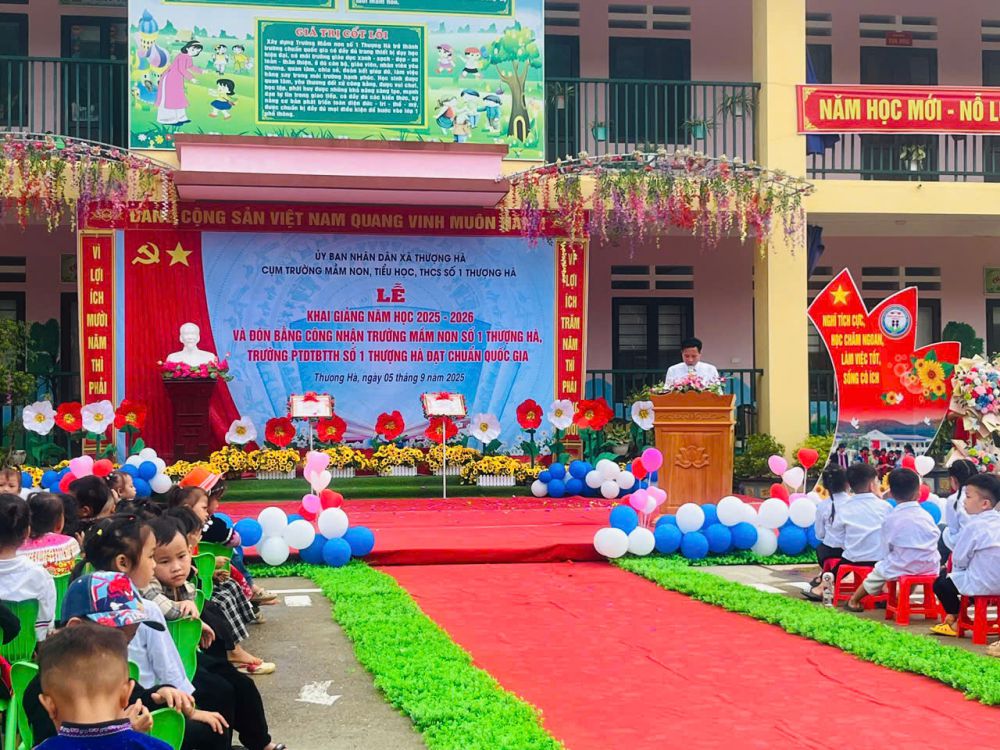 Sáng ngày 5/9/2025, trong không khí vui tươi, phấn khởi của ngày tựu trường, cụm trường MN-TH-THCS số 1 Thượng Hà đã long trọng tổ chức Lễ khai giảng năm học mới 2025-2026 và đón bằng công nhận trường MN số 1 Thượng Hà và trường PTDTBTTH số 1 Thượng Hà đạt chuẩn Quốc gia.