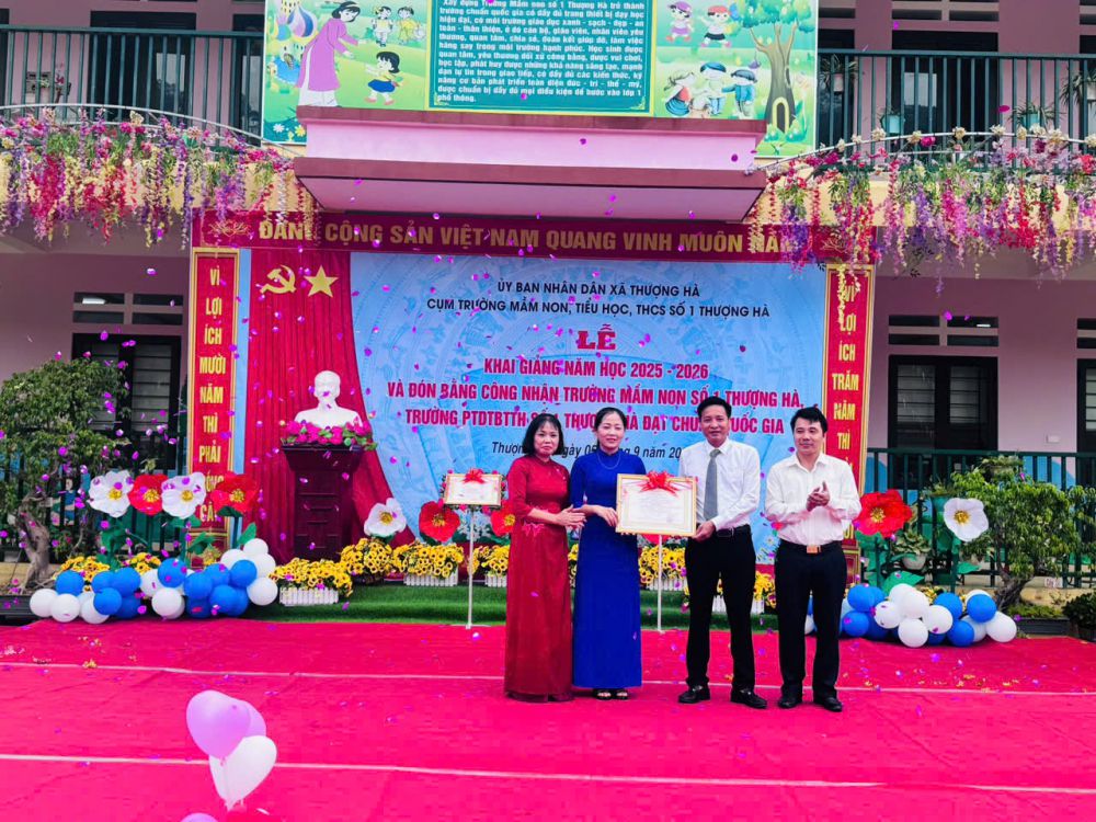 KHAI GIẢNG NĂM HỌC MỚI 2025-2026 TẠI CỤM TRƯỜNG MN-TH-THCS SỐ 1 THƯỢNG HÀ VÀ ĐÓN BẰNG CÔNG NHẬN TRƯỜNG CHUẨN QUỐC GIA