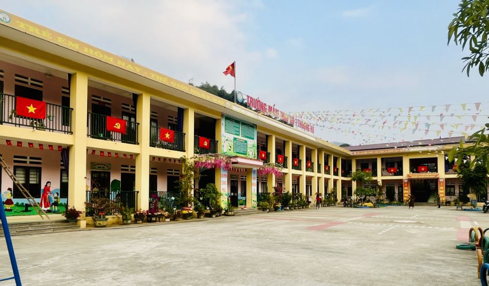 Nhà trường đã tổ chức treo cờ Tổ quốc, cờ Đảng tại khuôn viên trường và các lớp học; tổ chức trang trí cảnh quan sư phạm khang trang, sạch đẹp, rực rỡ sắc màu, tạo nên không gian tươi mới, trang nghiêm nhưng gần gũi, thân thiện đối với trẻ thơ❤️♥️